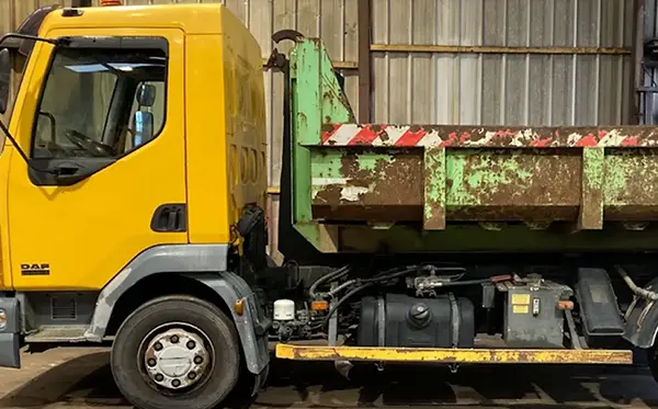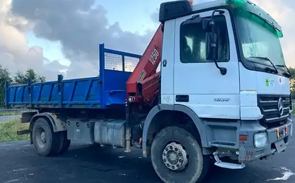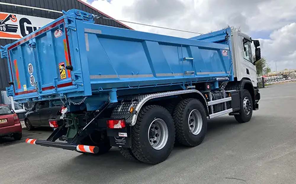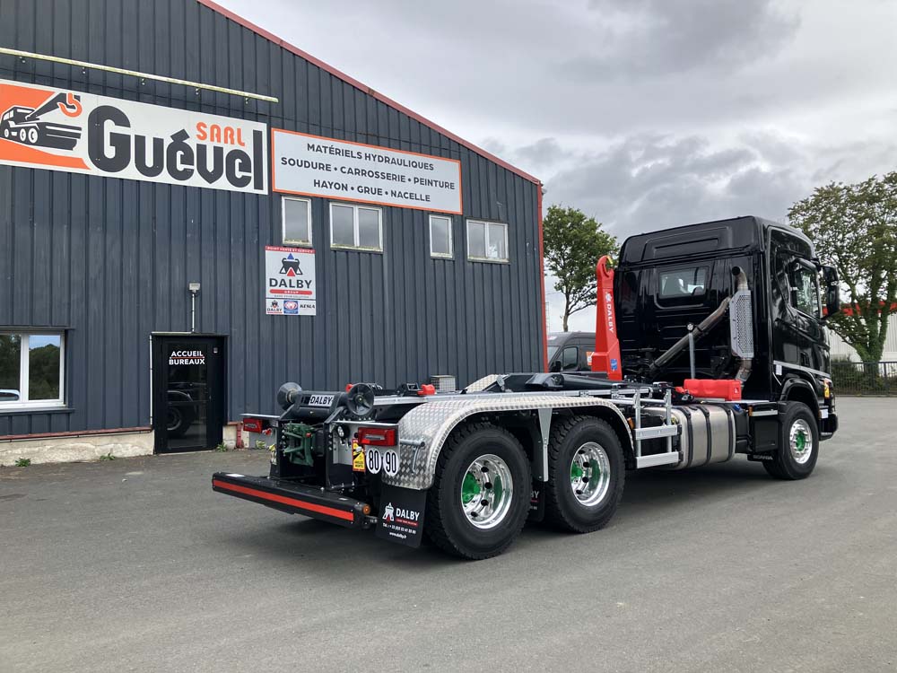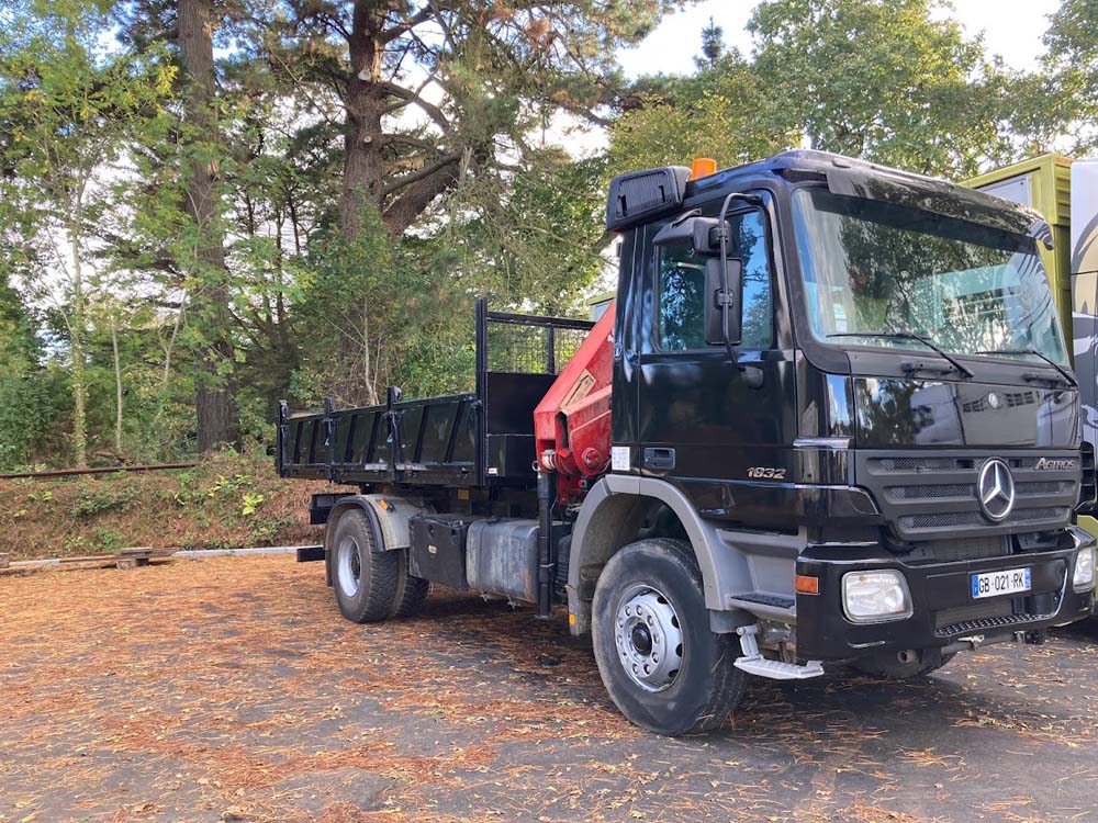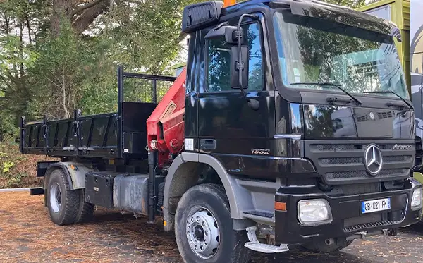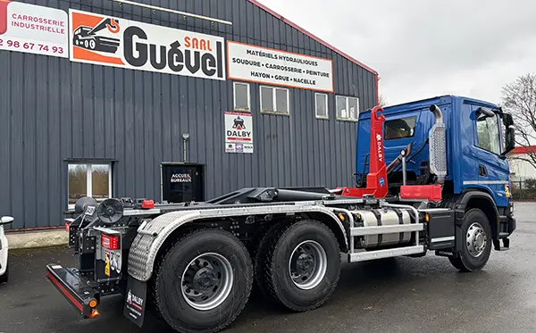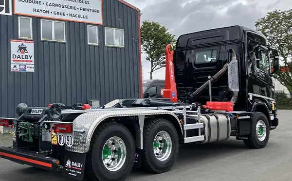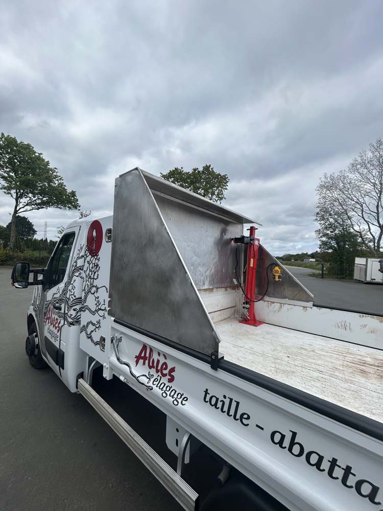 Installation d'une potence et protection sur une benne.