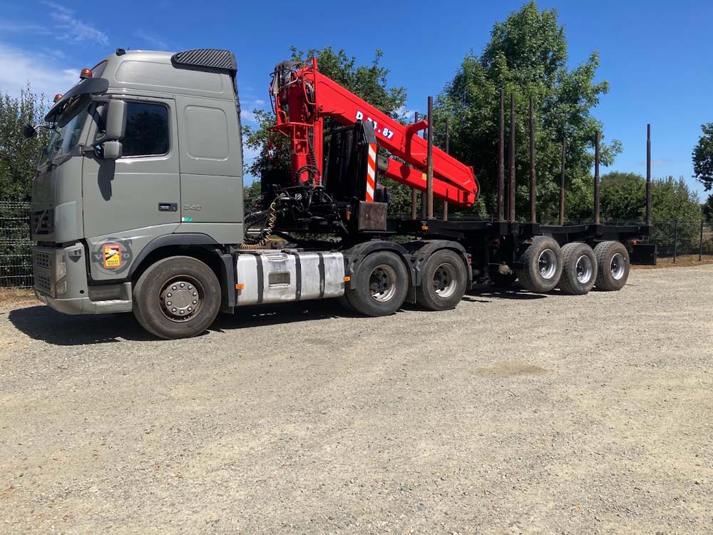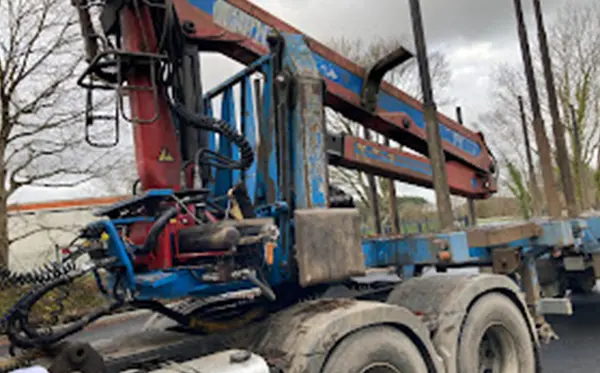 Installation d'une petite grue forestière.